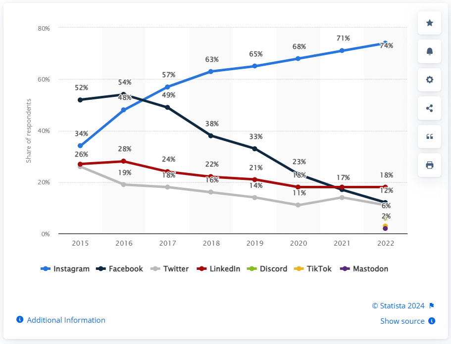 For example, this piece of research from Statista shows how Instagram has become the dominant platform when it comes to people looking for art. If you’re selling art, jewellery etc then obviously Instagram has to be a serious consideration as a platform for you to sell on.